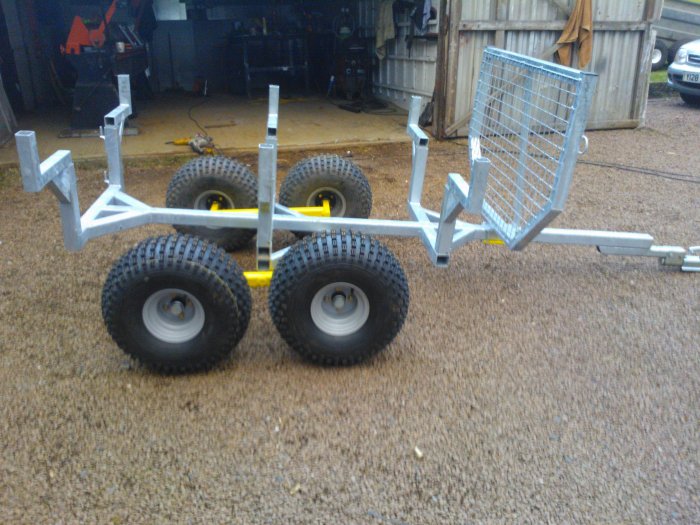 All welded up with my 190Amp mig and galvanised afterwards. The tandem axles are pivoted on 1 1/4 round steel pins through brass bushes with stainless washers either side of the pin and secured with a split pin. I also fitted a 360* swivel hitch for added safety on rough ground and slopes. The top half of the stakes are removable as I'm planning on making up a removable flatbed deck at a later date to make it more useful when not needing to haul timber. The headboard at the front is also adjustable forward and rear to allow for different lengths of timber.